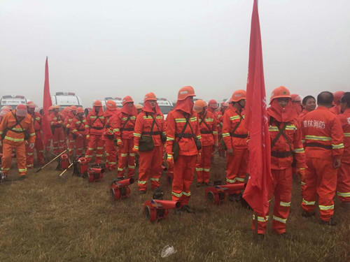 经开区森林消防大队参加2017年秋冬季全市森林消防队伍扑救模拟演练