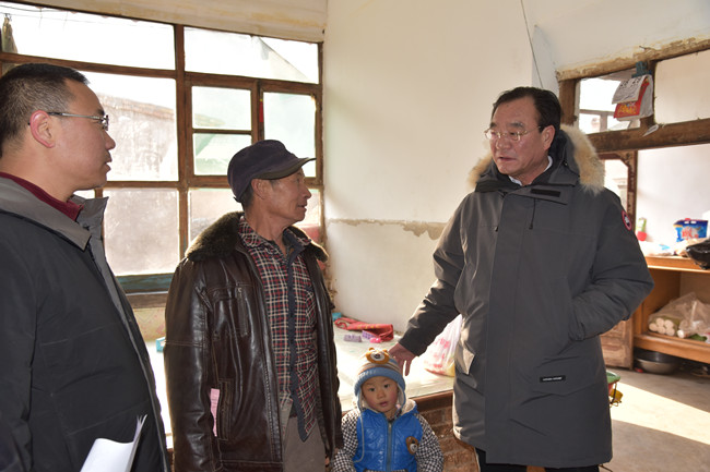 元旦佳节将至,为深入贯彻党的十九大精神,认真落实精准扶贫安排部署,扎实推进扶贫领域重点工作进展,切实履行帮扶职责,根据扶贫工作有关要求,20171229日,张家口市森林公安局刘晓卫局长带队来到蔚县柏树乡松枝口村,检查指导驻村扶贫近期重点工作,为该村贫困户带去年历、生活必需品等节日慰问品,并送去节日祝福。